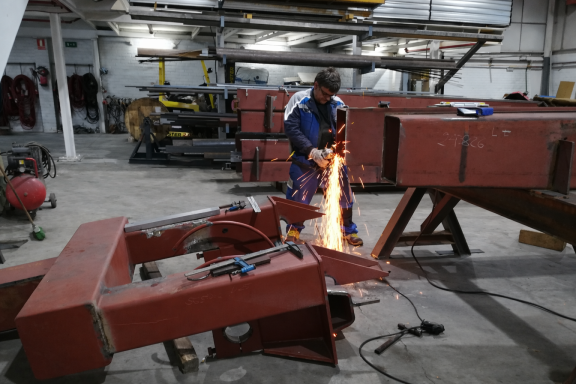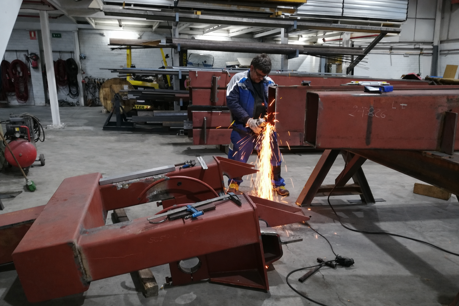 •Fabrication of new boom sections, including cutting and bending of steel plates