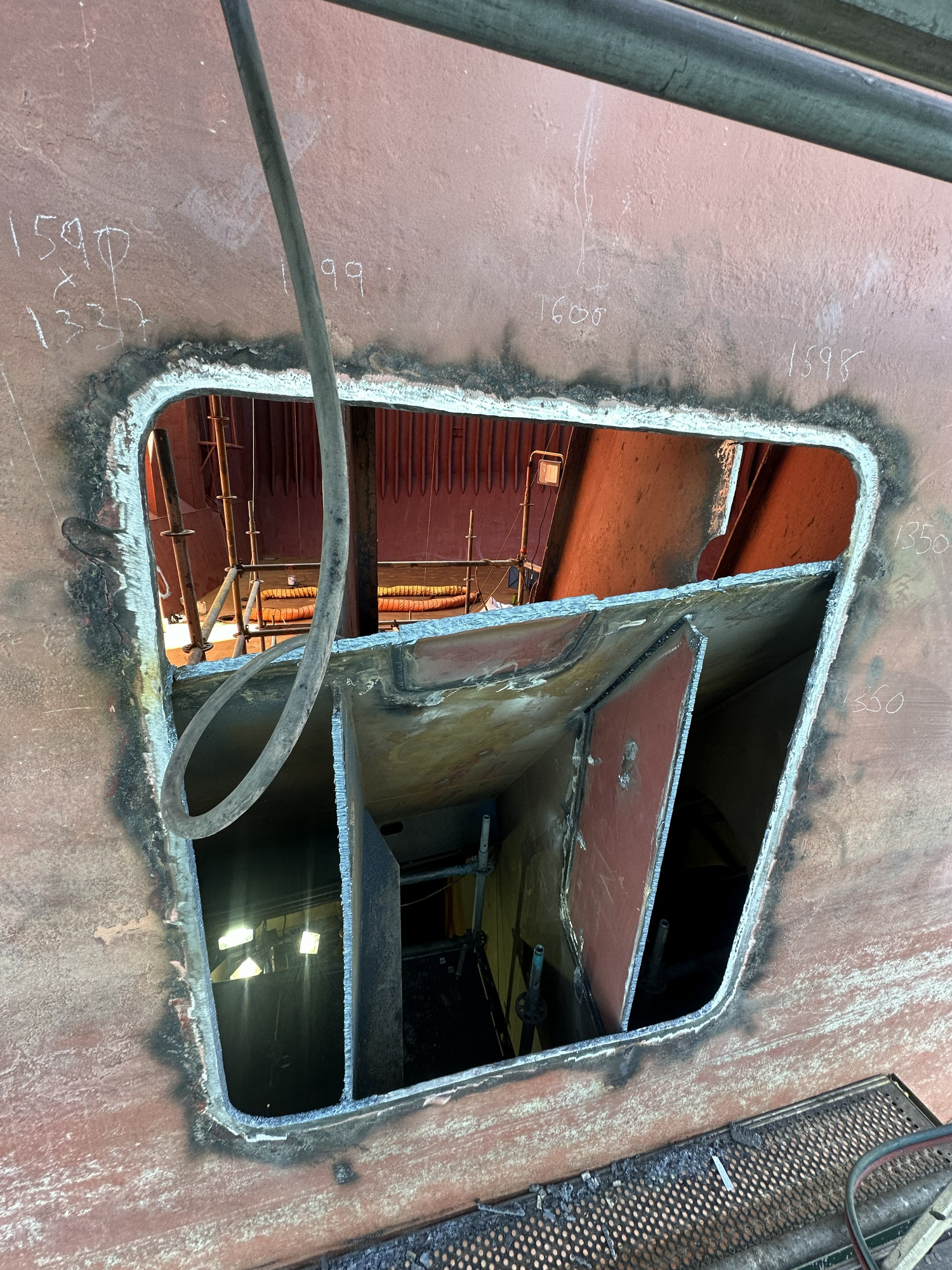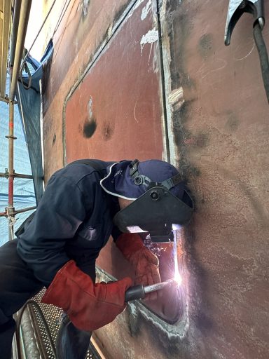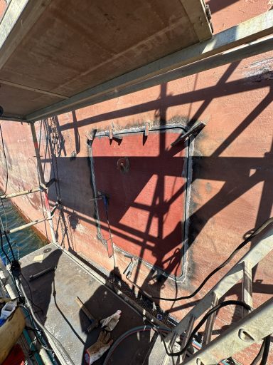 Marine steel works in Algeciras: onboard structural repairs, renewals, insert plates and certified welding under approved procedures.